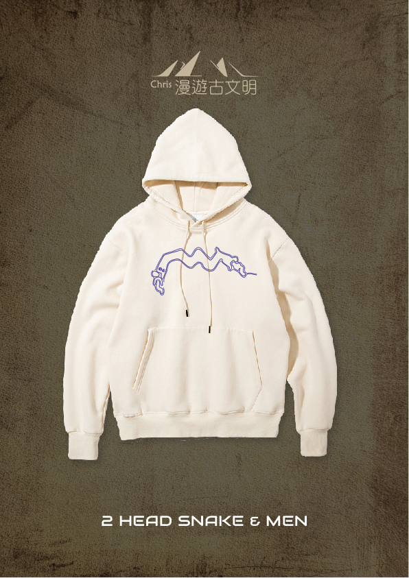 Nazca Oversized Fleece Hoodie | 納斯卡線 Collection: 2 Head Snake & Men Cream White L