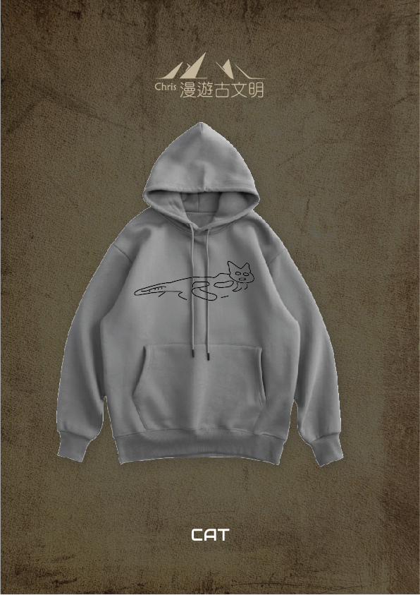 Nazca Oversized Fleece Hoodie | 納斯卡線 Collection: Feline 貓 Mid Grey L