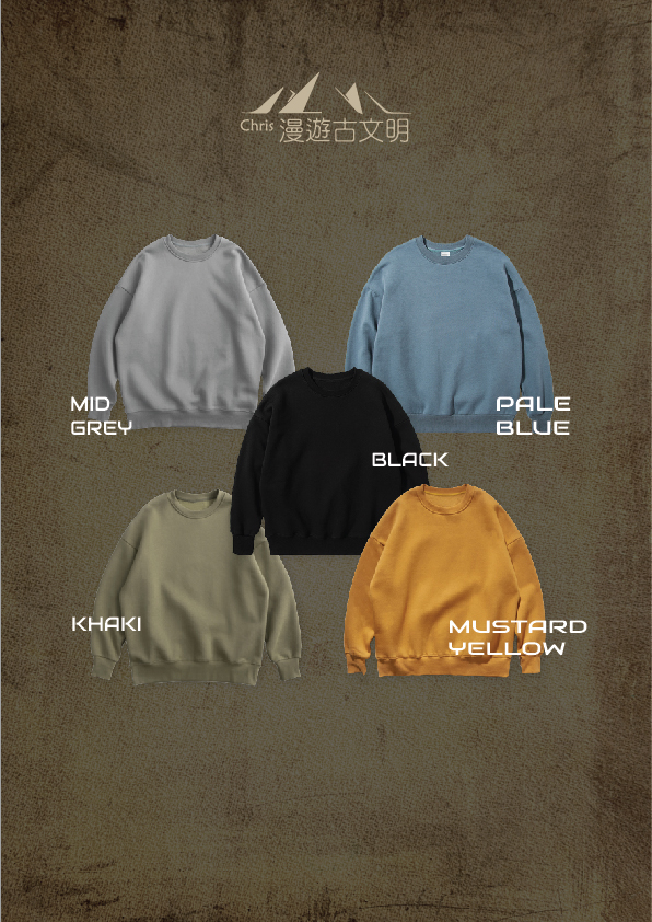 5 種顏色,由 S 到 XXL。請選擇你喜歡的「納斯卡線」圖案,Sweater 顏色及尺碼。